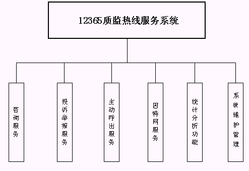 CENTER) 技術(shù),建立12365質(zhì)監(jiān)熱線服務(wù)系統(tǒng)。它可以作為連接大眾和產(chǎn)品質(zhì)量服務(wù)的橋梁,質(zhì)量技術(shù)監(jiān)督局管理窗口的延伸,質(zhì)量技術(shù)監(jiān)督局對大眾進(jìn)行電子化服務(wù)的門戶;為打擊假冒偽劣商品,保護(hù)名優(yōu)產(chǎn)品發(fā)揮橋梁紐帶作用。
