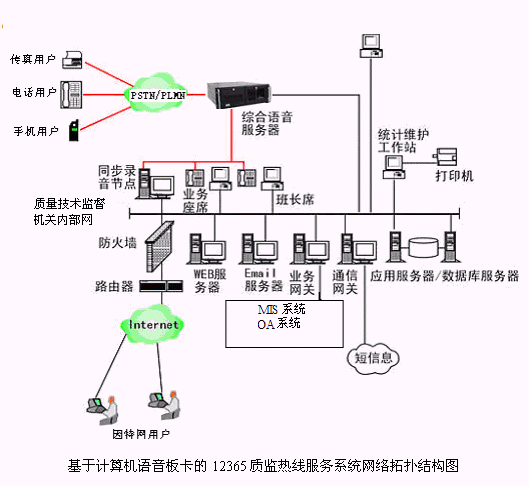 基于計算機(jī)語音板卡的12365質(zhì)監(jiān)熱線服務(wù)系統(tǒng)網(wǎng)絡(luò)拓?fù)浣Y(jié)構(gòu)圖