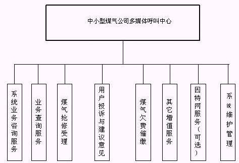 客戶(hù)利用電話(huà)、手機(jī)等撥打某一特服號(hào)碼(如9xxxx)進(jìn)入中小型煤氣公司多媒體呼叫中心系統(tǒng),本系統(tǒng)依托煤氣公司各類(lèi)業(yè)務(wù)技術(shù)支持系統(tǒng)和網(wǎng)絡(luò)系統(tǒng),通過(guò)人工受理或自動(dòng)語(yǔ)音服務(wù)等方式全天24小時(shí)不間斷地為客戶(hù)提供各種服務(wù)。