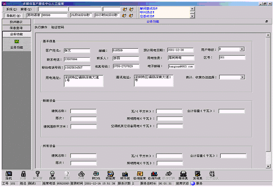 客戶(hù)信息包括客戶(hù)編號(hào)、客戶(hù)名稱(chēng)、聯(lián)系電話(huà)、地址、所屬地區(qū)、地區(qū)編號(hào)、用戶(hù)人口數(shù)、樓層等多項(xiàng),接聽(tīng)客戶(hù)呼入電話(huà),由座席代表記錄信息形成檔案,也可采用更為主動(dòng)的呼出方式來(lái)確認(rèn)、核實(shí)、補(bǔ)充檔案。