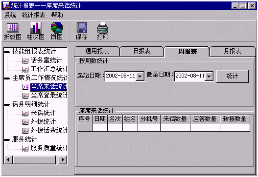 ·座席員來話統(tǒng)計(jì):按座席員統(tǒng)計(jì)來話情況。