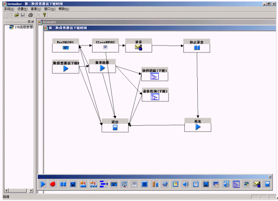 系統(tǒng)提供圖形化的語音流程生成環(huán)境,以方便用戶對語音流層進(jìn)行定制。流程生成器是一套可視化的流程設(shè)計(jì)工具,通過拖拉圖標(biāo)控件、鼠標(biāo)連線即實(shí)現(xiàn)呼叫中心CTI流程的制作,同時(shí),通過運(yùn)行時(shí)鏈接動(dòng)態(tài)連接庫(DLL),實(shí)現(xiàn)對業(yè)務(wù)數(shù)據(jù)庫的訪問;通過運(yùn)行時(shí)鏈接用戶DLL,最靈活地與用戶應(yīng)用系統(tǒng)結(jié)合;支持多種業(yè)務(wù)集成和動(dòng)態(tài)流程控制,方便用戶拓展業(yè)務(wù);采用事件驅(qū)動(dòng)機(jī)制、開放的結(jié)構(gòu),滿足各種語音系統(tǒng)的需要;支持不限個(gè)數(shù)、級(jí)數(shù)的IVR結(jié)構(gòu),可滿足用戶非常復(fù)雜的需求。