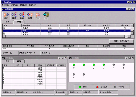 ·監(jiān)聽:班長可監(jiān)聽座席與客戶之間的通話,而座席與客戶雙方都不會(huì)察覺。