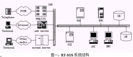 SAE完成接入服務(wù)器(Access Server)和RT-SOS后臺的通訊, 為每種接入方式設(shè)計接口程序, 實現(xiàn)了RT-SOS后臺業(yè)務(wù)處理與前臺接入方式無關(guān)。這里的接入服務(wù)器指網(wǎng)站服務(wù)器(IIS、Apache)、短信中心(SMS或者短信網(wǎng)關(guān))、程控交換機(或者CTI設(shè)備)等等。