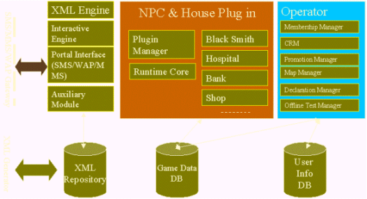 基于上述的因素,北京市萬隆然博科技有限責(zé)任公司率先在國內(nèi)推出了無線互連游戲平臺,把游戲的快速開發(fā)、游戲的運(yùn)行引擎和游戲的客戶服務(wù)管理集成在一體。方便了短訊運(yùn)營商的運(yùn)營。同時(shí),然博科技通過分析各類游戲的特點(diǎn)和無線交互方式的特點(diǎn)。具有獨(dú)創(chuàng)性的推出了一種游戲描述XML格式。通過然博科技提供的離線工具,游戲策劃人可以自己編寫腳本,自己定義場景,進(jìn)行仿真。同時(shí),上傳到實(shí)際運(yùn)行的服務(wù)器端。真正的實(shí)現(xiàn)了短信門戶的個(gè)人創(chuàng)作工具。使得短信門戶真正的可以與傳統(tǒng)的Web門戶有相同的運(yùn)營模式。ICP可以通過出賣短信服務(wù)器的硬盤空間來實(shí)現(xiàn)與內(nèi)容宿主共同盈利的模式。