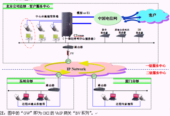 OKI的IP客服中心可以將各個分點和服務(wù)器間用VoIP網(wǎng)關(guān)連接。OKI的VoIP網(wǎng)關(guān)"BV系列",是在"MOS(Mean Opinion Score)"和"PESQ(Perceptual