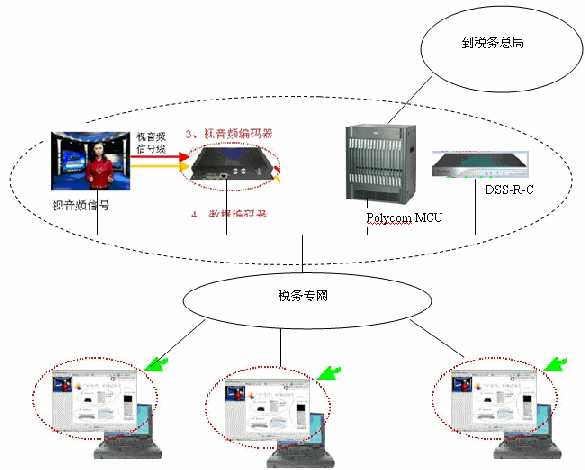 江西地稅組建了全省性的視頻會議網(wǎng)絡,系統(tǒng)采用了Polycom的解決方案。會議網(wǎng)絡覆蓋到了縣一級的稅務機關,但是由于投資和網(wǎng)絡條件的限制,無法實現(xiàn)全系統(tǒng)的覆蓋。在此情況下,深圳銳取軟件技術有限公司向江西地稅提供了流媒體的解決方案,以非常經(jīng)濟的方式把視頻會議系統(tǒng)延伸到了稅務系統(tǒng)內(nèi)的每一個桌面。而且它還解決了原有系統(tǒng)中會議過程的記錄問題,實現(xiàn)整個會議的聲音、視頻和數(shù)據(jù)的全程錄制,未與會人員可以隨時隨地登陸到服務器上點播和觀看會議過程。
