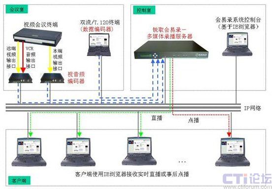 支持H.323和H.320等多種制式的視頻會議的錄制直播;