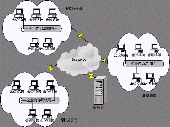 3、 靈活性,如某一員工出差,只要他的隨身PC能上網(wǎng)就能與主會場連接實(shí)現(xiàn)互動(dòng)會議。