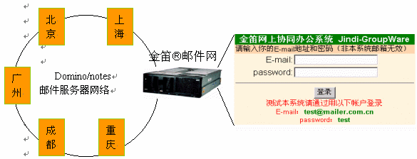 。1) 在不改變現(xiàn)有網(wǎng)絡硬件、軟件環(huán)境的情況下,添加一臺郵件網(wǎng)關服務器,通過統(tǒng)一的web登陸界面,輸入Email地址和密碼后,金笛?郵件網(wǎng)關會自動根據(jù)內部DNS找到該用戶所在的Domino Mail Server, 并通過標準郵件協(xié)議POP3提取該用戶的郵件,以web頁面形式顯示在用戶屏幕上。