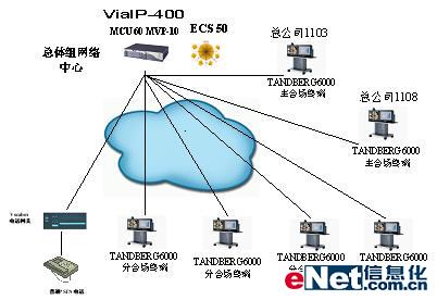 整個網(wǎng)絡以上?偛繛楹诵模黄陧椖拷ㄔO包括含主會場在內的27分支網(wǎng)點,應用的主要是TANDBERG公司的TANDBERG 6000型產品。二期項目還要擴容。