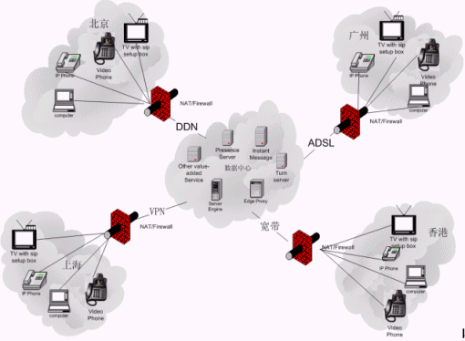 傳統(tǒng)的電信服務(wù)電話費分為長途電話費和市話費,其中長途電話的費用遠遠高于普通市話費,因此如何節(jié)省寵大的長話費用一直是企業(yè)關(guān)心的話題。隨著業(yè)務(wù)的增長,許多公司需要不斷增設(shè)分支機構(gòu),往來總部與各分部之間的電話也越來越頻繁,集團內(nèi)的長途話費居高不下,在公司采取種種控制、限制話費措施的同時也妨礙了各分公司之間充分、及時的溝通。針對上述種種矛盾,北京旋極信息技術(shù)有限公司推出了SIP企業(yè)級VOIP解決方案,該方案可以使集團內(nèi)的各分支機構(gòu)之間聯(lián)系方便、高效、充分、及時的溝通、而通話費用卻為零(只要各分支機構(gòu)能上Internet,就可以免費打國際國內(nèi)長途電話)。