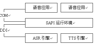 最新的SAPI 3.1提供了基于COM的高級編程接口,應(yīng)用程序通過這些接口與語音引擎打交道。SAPI將ASR和TTS功能集成在同一個語音引擎中,TTS可以將文本和文件合成為語音,ASR則是將人的聲音信號轉(zhuǎn)換為可讀的文本或文件。