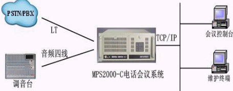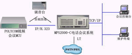 MPS2000音頻橋可以通過IP與視頻會(huì)議MCU相連,或者通過音頻四線與調(diào)音臺(tái)相連,從而使兩個(gè)系統(tǒng)實(shí)現(xiàn)語(yǔ)音互連。