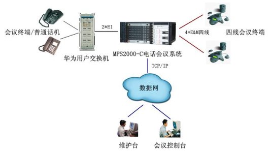 在接入上,通過2個數(shù)字中繼與華為大型用戶交換機互連,實現(xiàn)華為用戶交換機下的模擬用戶作為與會用戶的接入,也可通過華為交換機出局,實現(xiàn)PSTN網(wǎng)內的用戶接入。