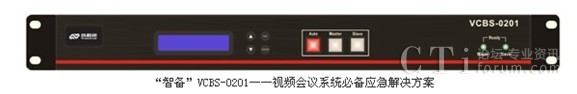 在視頻會議召開的過程中,主會場視頻終端等設(shè)備如果發(fā)生故障時其音視頻信號會發(fā)生中斷,由此將會使整個視頻會議無法繼續(xù)進行,傳統(tǒng)的解決辦法是配置第二套視頻終端作為冷備份,當主設(shè)備發(fā)生中斷時由系統(tǒng)維護人員以手工方式切換至備用設(shè)備。北京真視通自主研發(fā)的智備(產(chǎn)品型號:VCBS-0201),解決了主會場主備終端的自動、快速、無縫切換的問題。