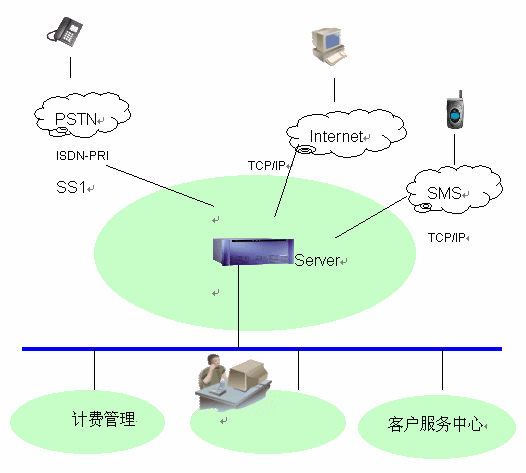 支持普通電話、傳真、IP電話以及其他任何采用H.323協(xié)議的Internet呼入;支持普通電話、IP電話、傳真、短信等方式的呼出,系統(tǒng)的呼入和呼出方式都可以根據(jù)業(yè)務(wù)需要方便的擴(kuò)展。