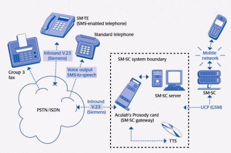 Aculab Prosody PCI板卡的DSP資源最終服務(wù)于此固話(huà)SMS業(yè)務(wù)。用戶(hù)可利用此業(yè)務(wù)通過(guò)移動(dòng)網(wǎng)絡(luò)向固網(wǎng)用戶(hù)發(fā)送多達(dá)160個(gè)字符的消息;同時(shí),擁有SMS兼容話(huà)機(jī)的用戶(hù)也可以向移動(dòng)用戶(hù)或其它支持SMS的設(shè)備直接發(fā)送和接收SMS信息。