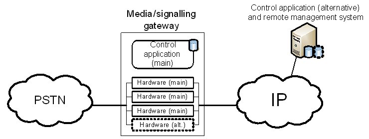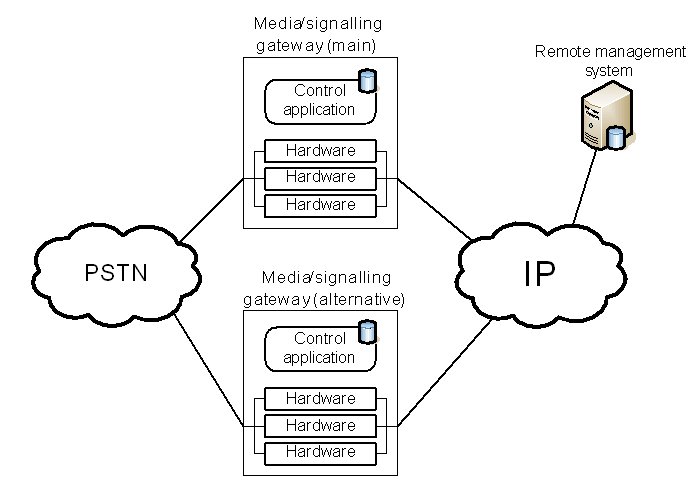 這兩種保護(hù)機(jī)制的區(qū)別可以從下面的例子進(jìn)一步闡述。該事例是一種企業(yè)IP-PSTN網(wǎng)關(guān)應(yīng)用。一般情況下,企業(yè)級的網(wǎng)關(guān)并不采用軟交換架構(gòu),所以媒體和信令網(wǎng)關(guān)功能在同一設(shè)備內(nèi)實(shí)現(xiàn)。這類網(wǎng)關(guān)是一個獨(dú)立的機(jī)架,內(nèi)裝能實(shí)現(xiàn)媒體和信令處理的硬件板卡和控制類應(yīng)用程序。此設(shè)備可以本地管理,也可以采用遠(yuǎn)程管理,如采用標(biāo)準(zhǔn)Web服務(wù)器。
