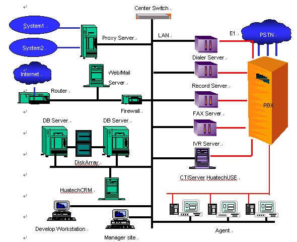 華泰貝通客戶服務系統(tǒng)是可伸縮的積木式系統(tǒng),集成智能用戶數(shù)字交換機、自動語音服務器、WEB服務器等多種訪問通道,配合功能強大HuatechUSE呼叫管理中間件,方便客戶按需搭建個性化的呼叫中心,輕松處理各種關鍵業(yè)務。