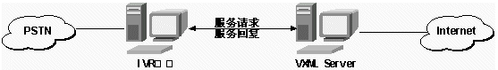 在這里VXML是指Voice XML的服務(wù)器,它負(fù)責(zé)接收IVR轉(zhuǎn)發(fā)過(guò)來(lái)的用戶(hù)按鍵請(qǐng)求,并返回信息數(shù)據(jù)和操作指令。
