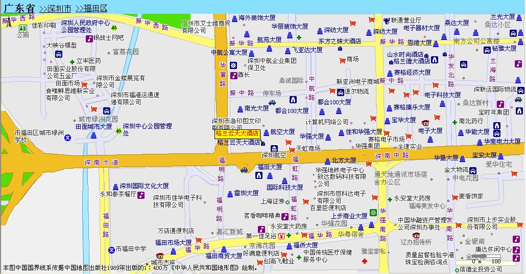 深圳格蘭云天大酒店 深南中路 3024 號(上海賓館東側,茶色玻璃大樓) 點擊查看地圖