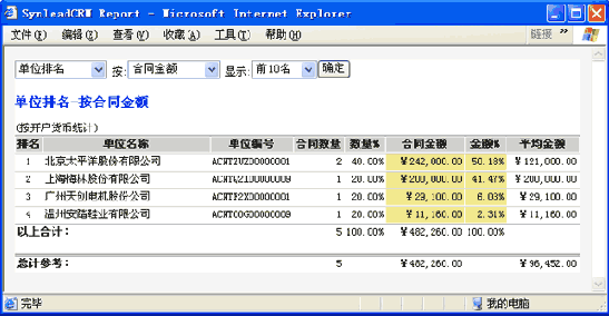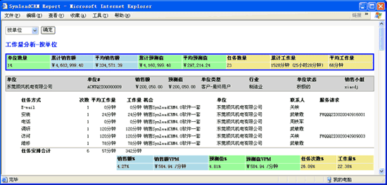 例如,在SynleadCRM"合同"工作界面,過濾出所需的定單記錄集,可生成以下復(fù)雜報表