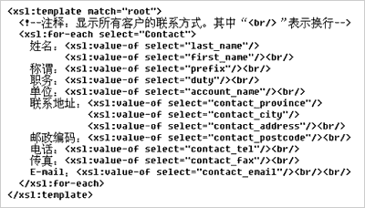 XSL采用結(jié)構(gòu)化描述。XSL遵循XML語(yǔ)法規(guī)范,結(jié)構(gòu)性、可讀性較強(qiáng)。經(jīng)過(guò)短時(shí)間學(xué)習(xí),渠道增值伙伴乃至用戶(hù)就可以掌握XSL描述要領(lǐng),改寫(xiě)或新建XSL模板,例如定制客戶(hù)化的報(bào)表。