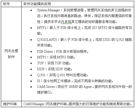 整個PSG信令轉(zhuǎn)換網(wǎng)關(guān)的軟件由系統(tǒng)支持軟件和網(wǎng)關(guān)處理軟件組成,具體見下表: