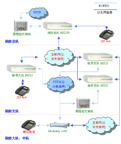 整個系統(tǒng)主要由Zultys MX250交換機(jī)、ZIP 4x4話機(jī)、ZIP 4x5話機(jī)構(gòu)成。MX250交換機(jī)擁有傳統(tǒng)電話交換機(jī)(PBX/PABX)的全部功能,可以真正把消防通信的數(shù)據(jù)網(wǎng)絡(luò)和電話網(wǎng)絡(luò)融為一體,實(shí)現(xiàn)基于IP的語音通訊。