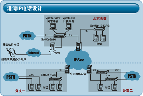 對于分支機(jī)構(gòu),港灣公司的解決方案超出了我們的預(yù)期。他們給予了兩套方案,第一種方案和我們標(biāo)書中的基本要求一樣,提供了內(nèi)部通信的單獨(dú)IP話機(jī),同時(shí)保留本地直線電話。第二種方案中則全部遷移到IP電話平臺中,依賴SoftUp201/202