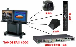 會(huì)議系統(tǒng)的組成非常簡(jiǎn)單,每個(gè)會(huì)場(chǎng)安放一臺(tái)視頻會(huì)議終端,終端接上電視機(jī)作為回顯設(shè)備、接上網(wǎng)絡(luò)作為傳輸媒介就可以了。一臺(tái)終端通常有一臺(tái)核心編解碼器、一個(gè)攝像頭,一個(gè)全向麥克風(fēng)以及一個(gè)遙控器。核心編解碼將攝像頭和麥克風(fēng)輸入的圖像及聲音編碼通過(guò)網(wǎng)絡(luò)傳走,同時(shí)將網(wǎng)絡(luò)傳來(lái)的數(shù)據(jù)解碼后將圖像和聲音還原到電視機(jī)和音響上,即實(shí)現(xiàn)了與遠(yuǎn)端的實(shí)時(shí)交互。終端通過(guò)呼叫IP地址或ISDN號(hào)碼進(jìn)行連接(專線無(wú)需撥號(hào))。但在有三點(diǎn)會(huì)場(chǎng)就必須采用MCU(視頻會(huì)議多點(diǎn)控制單元)進(jìn)行管理。