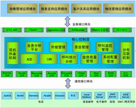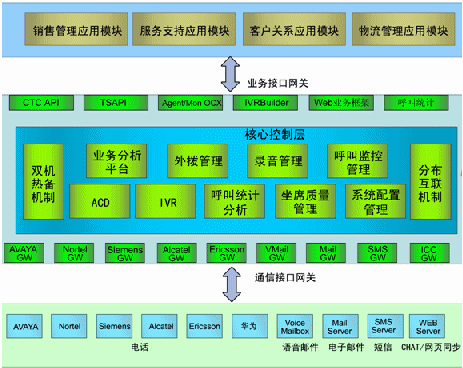 基于商路通Hi-Link的呼叫中心系統(tǒng)的整體邏輯架構(gòu)如下: