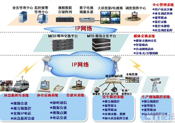 監(jiān)控和會議完美融合,監(jiān)控報警可以自動召集應(yīng)急會議,并通過短信、電話、直接視頻方式召集預(yù)定義的相關(guān)部門人員進入會議,監(jiān)控圖像可以作為會議的視頻源供與會者察看;不僅滿足日常監(jiān)控的應(yīng)用,還可在緊急情況時進入指揮狀態(tài),為應(yīng)急指揮決策提供平臺,同時與視頻會議功能有機融合,是管理者與被監(jiān)測點實時交流的工具。