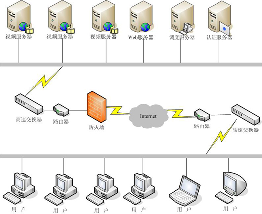 考慮到在線點(diǎn)播的用戶(hù)為1000并發(fā),所以使用一臺(tái)服務(wù)器就可以滿(mǎn)足需求了,客戶(hù)可以通過(guò)認(rèn)證后,經(jīng)客戶(hù)經(jīng)過(guò)調(diào)度服務(wù)器將請(qǐng)求反饋給視頻服務(wù)器,完成視頻點(diǎn)播流程,具體架構(gòu)如圖。