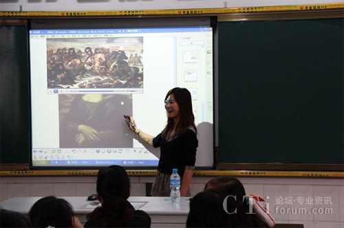 藝術學院的老師在講解《蒙娜麗莎》作品構圖的同時,點擊PPT的文字鏈接,出現(xiàn)視頻,通過視頻向同學介紹達芬奇的生活年代與其它相關作品。無需切換PPT,無需尋找相關資料,節(jié)省時間,也提高了講課的連貫性。