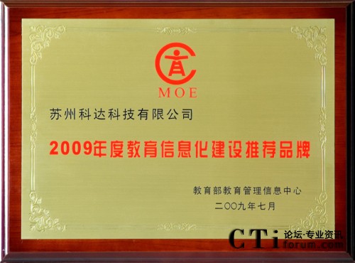 科達獲“2009年度教育信息化建設推薦品牌”