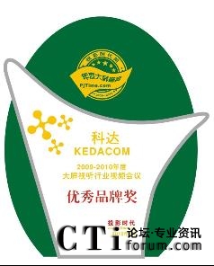 CTI論壇(ctiforum)2月3日消息(記者 張塵):今年1月,“2009——2010年度投影時代大屏盛典” 評選活動在北京成功落幕,領(lǐng)先的視訊廠商科達(dá)(KEDACOM)憑借專業(yè)的視訊產(chǎn)品、解決方案以及15年卓越的客戶服務(wù)品質(zhì)毫無懸念的榮膺“遠(yuǎn)程視頻會議優(yōu)秀品牌”。