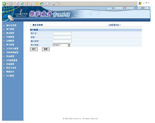 如果說(shuō)節(jié)省了幾臺(tái)服務(wù)器和CTI中間軟件的開支對(duì)于用戶而言僅僅是一個(gè)直觀的體驗(yàn),那么RT-CCP1000的維護(hù)和管理將對(duì)用戶產(chǎn)生長(zhǎng)久的影響,在維護(hù)和管理上仍然堅(jiān)持著一體化核心理念的RT-CCP1000平臺(tái),將用戶從多個(gè)廠家的設(shè)備互聯(lián)和維護(hù)中(程控交換機(jī)/CTI服務(wù)器/IVR服務(wù)器/錄音服務(wù)器)徹底的解放出來(lái)。RT-CCP1000基于WEB方式的全中文操作維護(hù)界面始終走在業(yè)界的最前沿。