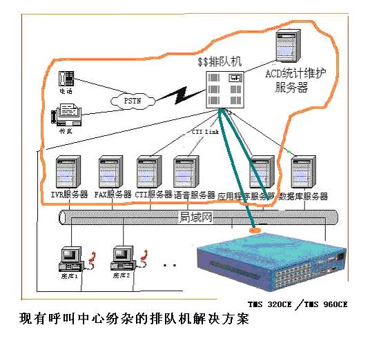 除AVAYA外,目前所有的傳統(tǒng)交換機(jī),都只是個(gè)PBX,用戶既不能編程,也沒可編程的CTI技術(shù),只承擔(dān)了系統(tǒng)中一個(gè)很小的排隊(duì)功能(ACD),該解決方案的關(guān)鍵任務(wù)仍然由語音卡+工控機(jī)的平臺(tái)來完成:IVR、CTI、FAX、錄音等系統(tǒng)的幾乎全部主要功能,因此無論從成本上還是技術(shù)的領(lǐng)先性、可靠性和穩(wěn)定性,可擴(kuò)展性和可維護(hù)性上,絕不是先進(jìn)的解決方案,而只是基于品牌的導(dǎo)向;而對(duì)于中小企業(yè),更多地去關(guān)心產(chǎn)品的適用性,而根本耗不起品牌。因此,從上圖可分析,傳統(tǒng)排隊(duì)機(jī)的解決方案本身很落后,性價(jià)比也很低。
