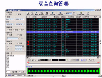 - 可按日期、時(shí)間、電話號(hào)碼、線路、人員等條件進(jìn)行查詢放音;支持語音卡放音、聲卡放音等。