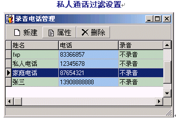 。。通過對某些特殊電話號(hào)碼的禁止錄音設(shè)置,DVS將自動(dòng)過濾該號(hào)碼進(jìn)行不錄音處理,以滿足私人通話及特殊場合的需要。