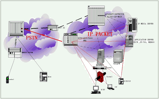 1、可以把裝有eProxy的服務器看成專用交換機VoIP switch,它負責內外電話的接通與斷開。如圖: