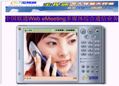 目前,市場上可視電話終端無非兩種,軟終端和硬件可視電話。對于硬件可視電話,價格從幾百元到上千元不等,這個價位只能使消費者望而卻步。亞軟Web eMeeting是在"寶視通"平臺基礎(chǔ)上開展的Web軟終端業(yè)務(wù)模式。