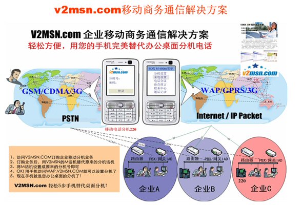 Mail,可發(fā)起WAP電話會(huì)議,可訪問(wèn)企業(yè)的CRM、ERP等應(yīng)用軟件并集成點(diǎn)擊呼叫等等)。不僅移動(dòng)運(yùn)營(yíng)商可以替代第一代的移動(dòng)總機(jī),固網(wǎng)運(yùn)營(yíng)商采用SOX-M移動(dòng)軟交換也可以輕松的開(kāi)展移動(dòng)總機(jī)(小靈通或手機(jī))的業(yè)務(wù)了,但SOX-M系統(tǒng)融合移動(dòng)運(yùn)營(yíng)商的無(wú)線互聯(lián)網(wǎng)數(shù)據(jù)業(yè)務(wù)將產(chǎn)生更大的利于企業(yè)應(yīng)用的前景,移動(dòng)總機(jī)(語(yǔ)音+WAP)的融合應(yīng)用成為第二代移動(dòng)總機(jī)殺手級(jí)應(yīng)用,令移動(dòng)總機(jī)如虎添翼。