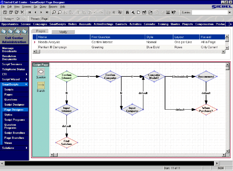 | 圖三. Siebel eMarketing綜合的客戶及市場(chǎng)分析 | 圖四. 使用Siebel eSmartScript工具設(shè)計(jì)市場(chǎng)營(yíng)銷策略工作流程 |
