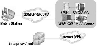 EMISS 移動信息服務系統(tǒng)是構建于企業(yè)平臺與移動運營商數(shù)據(jù)支撐平臺之間的增值業(yè)務服務系統(tǒng),在主體結構上劃分為EMISS Server 和Enterprise Client。