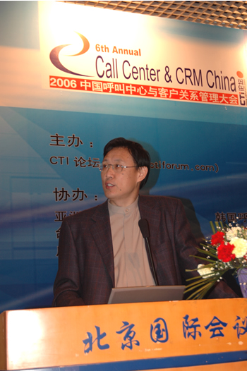 2006年4月3日至5日,2006中國呼叫中心與客戶關(guān)系管理大會在北京國際會議中心隆重召開,以下是九五太維副總裁李寶民博士專題演講實錄: