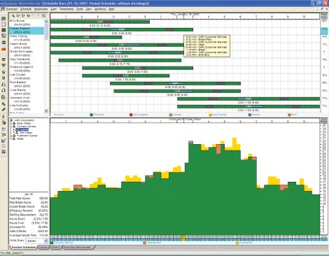 eQueue人力資源管理系統(tǒng)允許管理者在實施新的服務(wù)標(biāo)準(zhǔn)之前對調(diào)整帶來的影響進行檢測。What-If功能可以被用于檢測各種不同的全職和兼職座席服務(wù)混合比例對成本和服務(wù)級別影響。