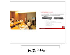 對于很多分會場通常只有1臺顯示設備的情況,H3C公司的視訊終端提供在1臺顯示設備上同時顯示"遠端的會場圖像+遠端膠片+本地會場圖像",顯示模式可通過終端遙控器靈活選擇:遠端圖像、遠端膠片、遠端圖像+遠端膠片、,實際顯示效果如下圖所示: